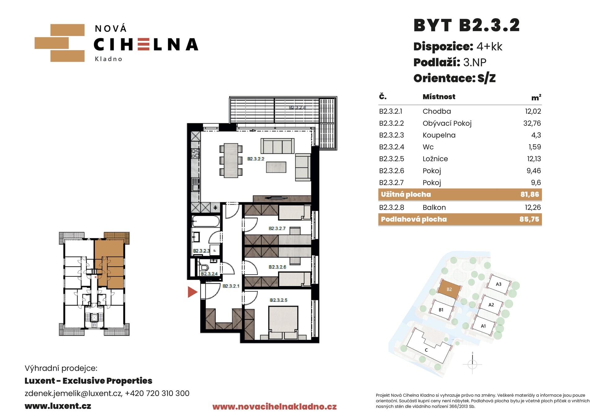 | NC-B232 | 4 + kitchenette | 2nd floor | 82 m2 | 86 m2 | No / 12 m2 / No | No | Reserved | Detail |