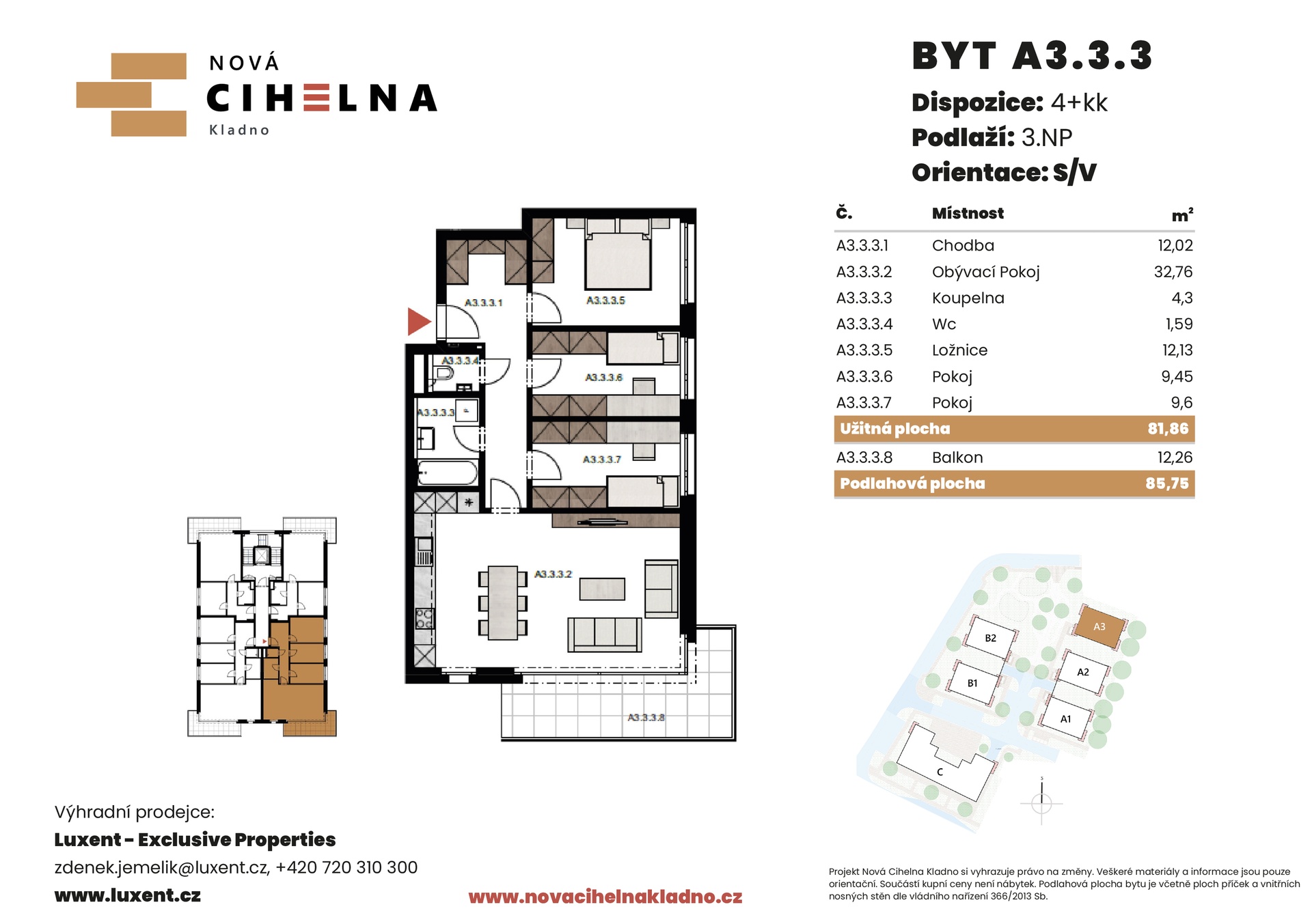 | NC-A222 | 3 + kitchenette | 1st floor | 73 m2 | 76 m2 | No / 12 m2 / No | No | Reserved | Detail |