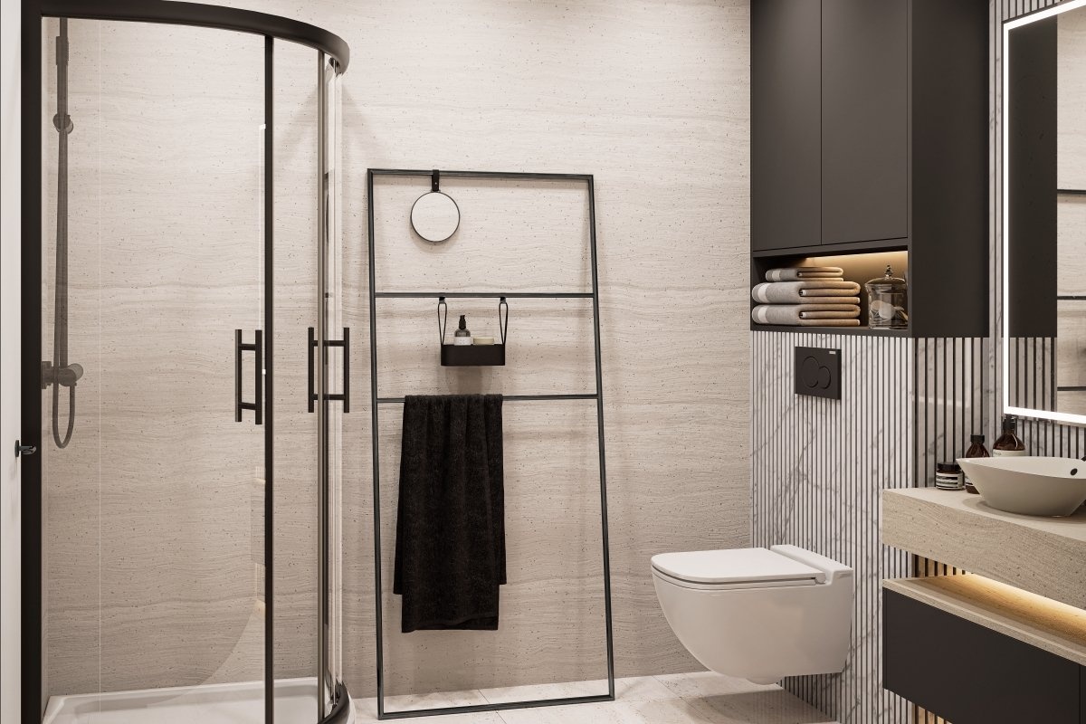 A great advantage of this property is the extensive outdoor area of 218.72 m², which provides complete privacy and all the comforts of a family home. There are cascading terraces with a garden and private pool, and just a few steps away is a landscaped coastal area with a sun terrace. Residents also have access to common areas – a rooftop terrace with seating and open sea views, a fitness area and saunas in the basement, and another communal pool.
