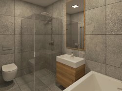 The apartment of 4+kt with a floor area of 87.2 sqm is located on the fourth floor of building A and includes an entrance hall with entrance to the bathroom with shower and toilet. There are also three bedrooms (one of which has access to the loggia), another separate bathroom with bath and a spacious living room with kitchenette and access to the loggia (17.4 sqm).