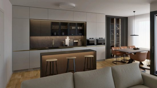 The new residence with a total of 19 apartments is being built in two three-storey apartment buildings in a quiet part of Silesian Ostrava. The residential complex creates two courtyards - the north-western one, which serves as the entrance parterre for both buildings and includes an entrance for cars, an entrance from the street and above-ground parking spaces for visitors. The southeast courtyard is situated between the two houses and serves the residents as a private quiet zone/garden with trees designed for relaxation with a dedicated area for children. The development fully respects the surrounding development of larger detached and semi-detached houses.