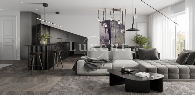 We offer for sale an apartment 4+kt with a total area of 188,4 sqm with a balcony and a terrace, in a newly built project at a prestigious address in Prague Vinohrady. The house is currently undergoing a complete renovation, which carefully preserves and restores all the original craftsman details, while combining them with contemporary interior design according to the latest standards. This house, built according to the plans of the builder Josef Rokos for the builder Alois Kaštík in the historicist style, is characterized by the romantic articulation of the street facade combined with Art Nouveau elements.