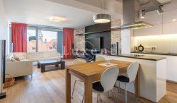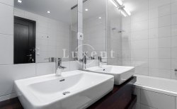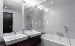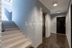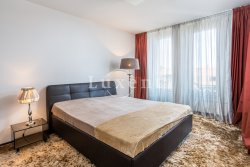 Equipment: there are oak parquets on the floors, luxurious carpets in the bedrooms. Floor heating in bathrooms, large format ceramic tiles. Air conditioning. There is a telephone and high-speed Internet connection (optical cable to the house). There is the security level of the entrance door. The apartment is equipped with built-in furniture and fully equipped kitchen, in case of interest it is possible to buy additional high-quality furniture (originally of 2 mil. CZK - Hastens beds, Bang Olufsen electronics, luxurious furniture in the interior and on the terrace). The price includes the cellar of 8 sqm in size.The residence itself has a 24/7 reception with security services.