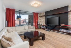 We are offering sale of an original maisonette with a residential sunny roof terrace and panoramic views of Prague. The apartment is on the 6th and 7th floor of the Sacre Coeur I residence with a 24/7 reception, in Prague 5 - Smíchov. The offer includes quite spacious cellar. In 2016 the apartment was completely renovated and since then it has been used minimally. It is spread over two floors with a total floor area of 198.5 sqm (145 sqm living area, 8.5 sqm balcony, 45 sqm terrace) 4+kt with a loggia and terrace.