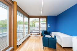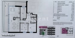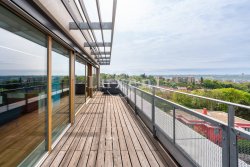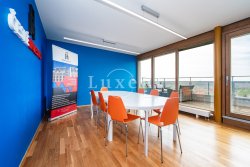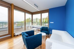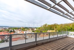 We offer for sale apartment 4+kt with a magnificent view of the Prague skyline, which has a floor area of 97 sqm and a south-west terrace of 36 sqm. The air-conditioned apartment is situated on the last, 4th floor of a new building (2016) with a lift and is currently used for running an office. The apartment has two parking spaces and a spacious cellar (5 sqm).
