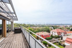 The interior includes an entrance hall, three bedrooms, a spacious living room with kitchenette (40 sqm) a bathroom with bath and wc and a second separate toilet. From the living room and one bedroom there is access to a terrace with magnificent views of the whole of Prague. There is a possibility to place a jacuzzi. Large French windows with triple glazing, air conditioning, wooden floors.