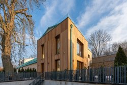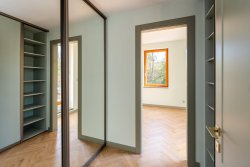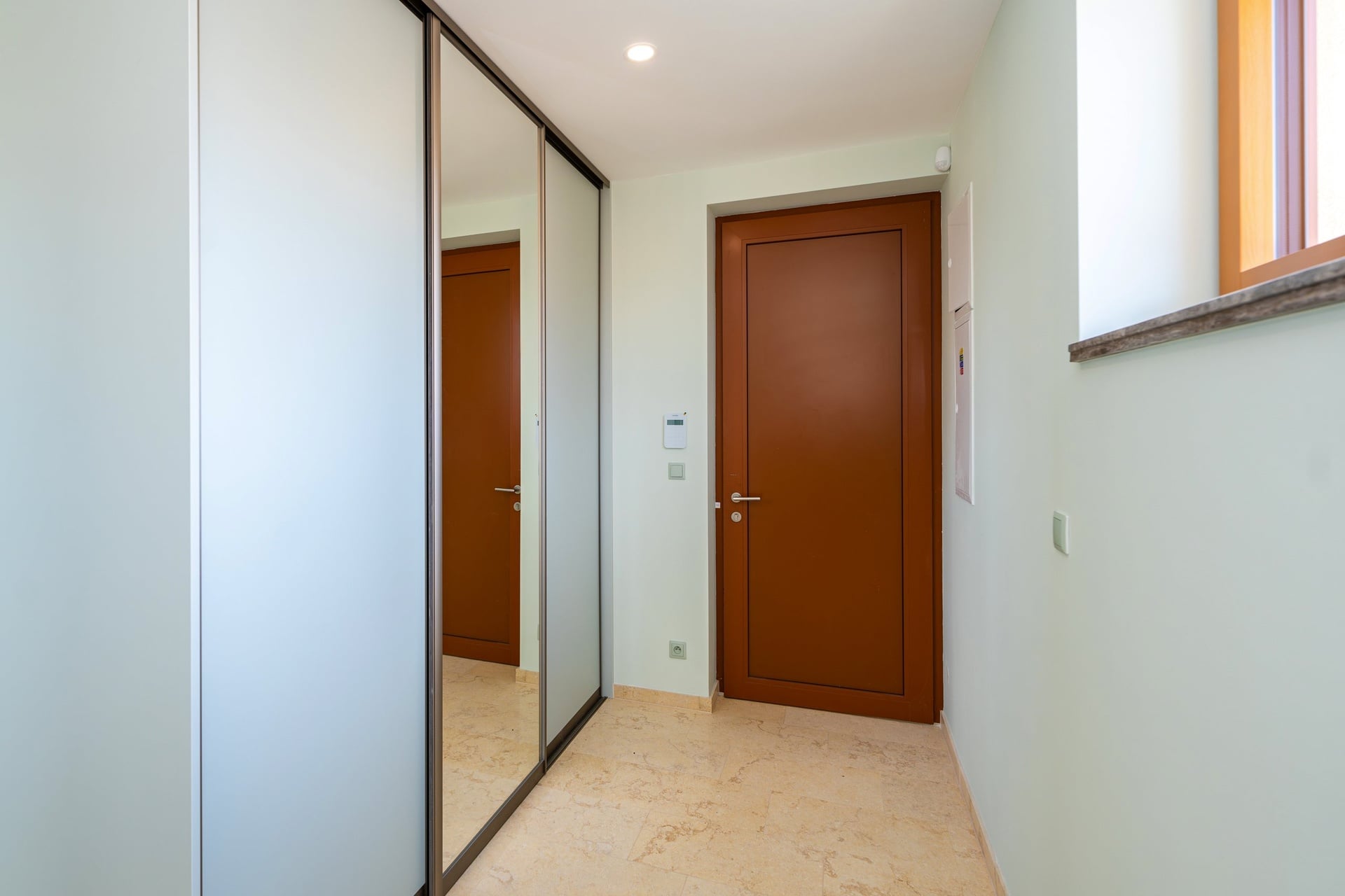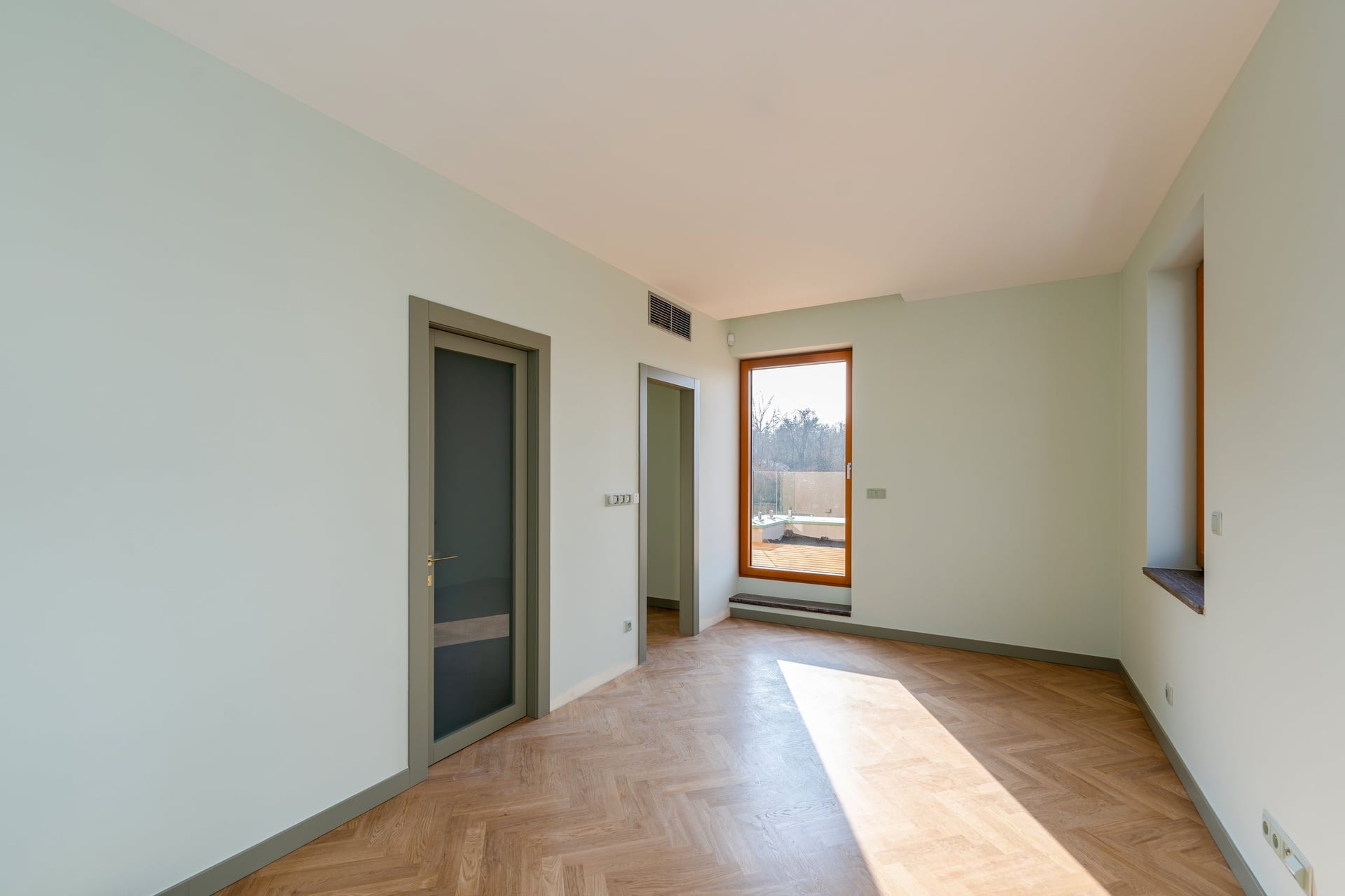 The residence is finished to a high standard – Porotherm 50, façade covered with Brazilian ash Garapa, wooden windows with insulated triple glazing, standing seam metal roof, three-layer wooden flooring, marble floors, underfloor heating, security and camera system by Jablotron, preparation for external blinds. Heating is provided by a STIEBEL ELTRON air-to-water heat pump.