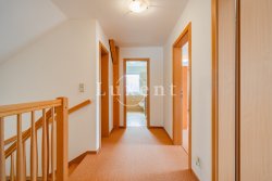 The two-story building (5+1 layout) offers a floor area of 151 m², a 32 m² garage, and 20 m² of attic storage space. The layout allows for convenient division into private and common areas, ideal for accommodating smaller groups, corporate teams, or guests. On the ground floor there is an entrance hall, a fully equipped kitchen with a dining area, a bright living room with a tiled fireplace, a separate room suitable for use as an office or staff room, and a toilet. The attic offers three bedrooms, a dressing room/storage room, and a modern bathroom with a bathtub, shower, sink, and toilet.