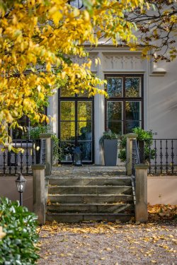 This imposing structure forms a harmonious whole with carefully landscaped grounds covering 6,505 m². The total usable area of the building is more than 1,585 m². The basement (40 m²) houses technical facilities and storage space.