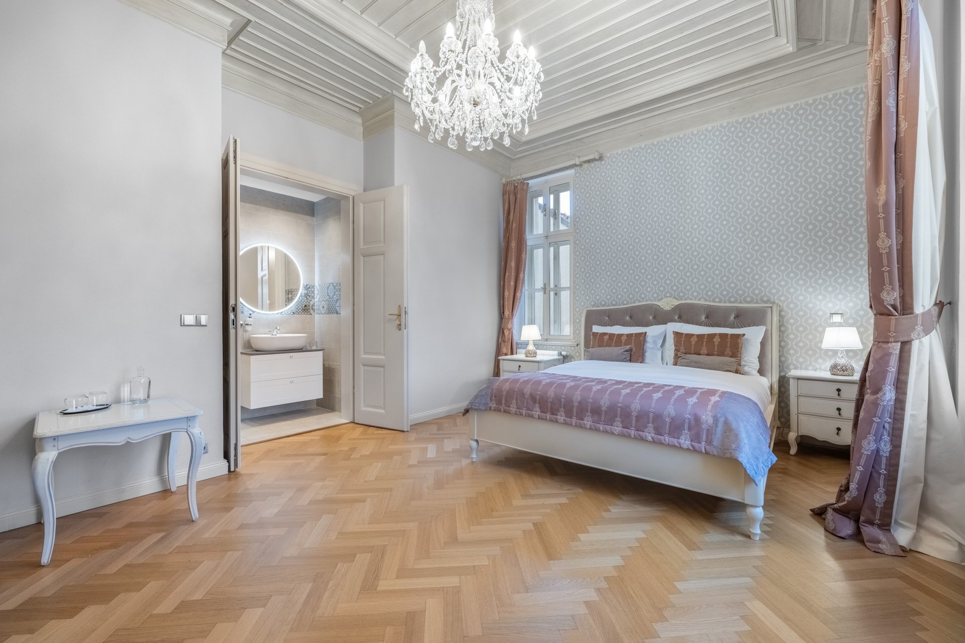 The castle offers accommodation in ten rooms (one Tower Suite apartment has two bedrooms above each other) with a total capacity of 22 beds. Six rooms have the option of an extra bed for up to two people, which further increases the total capacity. If necessary, it is possible to cooperate with the adjacent guesthouse (26 beds). Parking is provided on the premises, in the garage, and at the Trnovo church on private property for owners, staff, and visitors. A total of 27 parking spaces: garage (37 m²) for 4 cars, grounds for at least 8 cars, private parking for 18 cars).