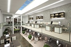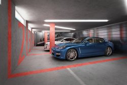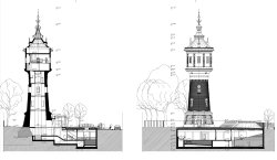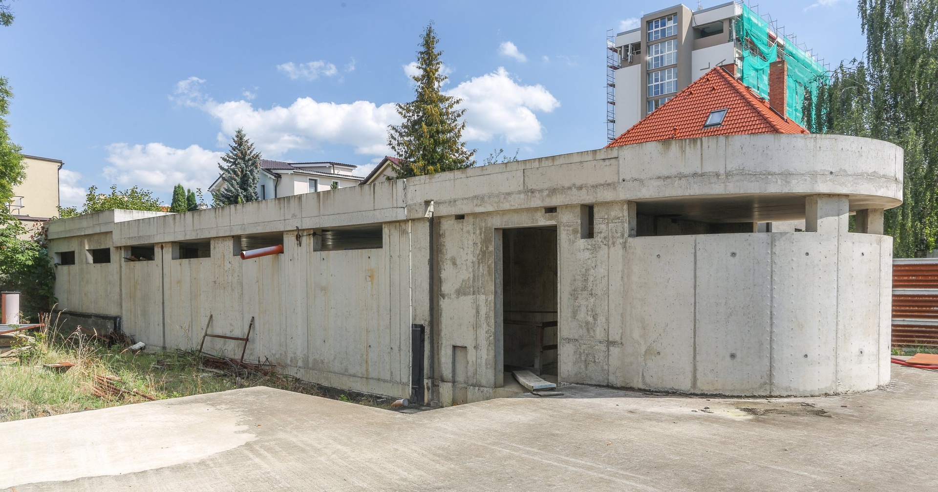 In addition to this property, there is a newly built underground space with direct outdoor lighting with a usable area of 433 m². These underground spaces are connected by a corridor to the water tower. On the property is also built a garage building of 158 m² for 8 cars. The garage has three separate entrances to the street. In the southern part of the garage building there is a security facility also with direct access from the street to the underground centre. The tower, underground space and garage are in shell and core condition.