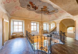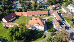 In the centre of Sedlec Prčice there is a castle with farm buildings, an adjacent park, meadows and two ponds. The park is surrounded by a Baroque enclosure wall with a main gate on the south and east sides, and the land is fenced on the north and west sides. Inside the park there is a residential house, which is not the subject of the offer and is also fenced. The earliest records of a noble residence date from the 12th century. Over time, the original castle was converted into a chateau and later rebuilt several times. The last owner before the nationalisation was Mr. Hásek, the general director of Škoda Plzeň, who bought the Prčice estate in 1924. After 1989, this inheritance was returned to the descendants of the original owner, who reconstructed it in the 1990s. The castle building is almost square in plan. There are preserved cellars with a vaulted ceiling in the basement. The castle has three floors above ground. There are 24 rooms and 10 bathrooms, a kitchen (preparation room) and an entrance hall that connects the floors. On the ground floor were the social and service rooms of the building. The first and second floors include rooms with facilities. The castle building is approximately 90% renovated. The current owners have respected the layout of the rooms from the early 20th century. The vaults have been preserved, parquet floors have been repaired or added, toilets with bathrooms have been completed. New electricity and water supply systems have been installed in the castle. The main hall is heated by a solid fuel stove, the ground floor has underfloor heating. The rooms are equipped with radiators. Everything is heated by an air pump. The water is supplied from the town mains. There is also a well on the property which has not been restored by the current owners. The mansion is connected to the sewerage system. The furnishings of the castle have not been preserved.