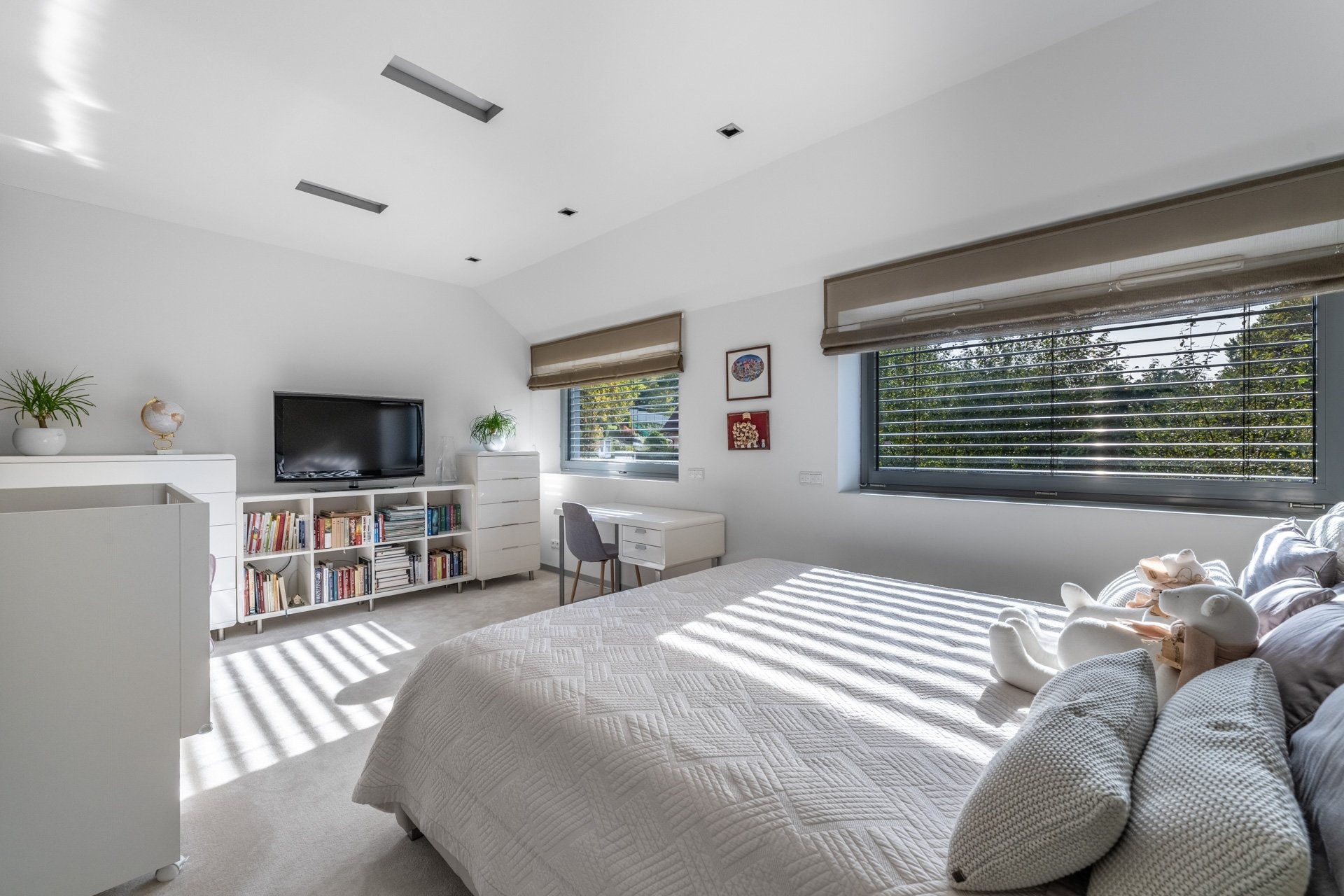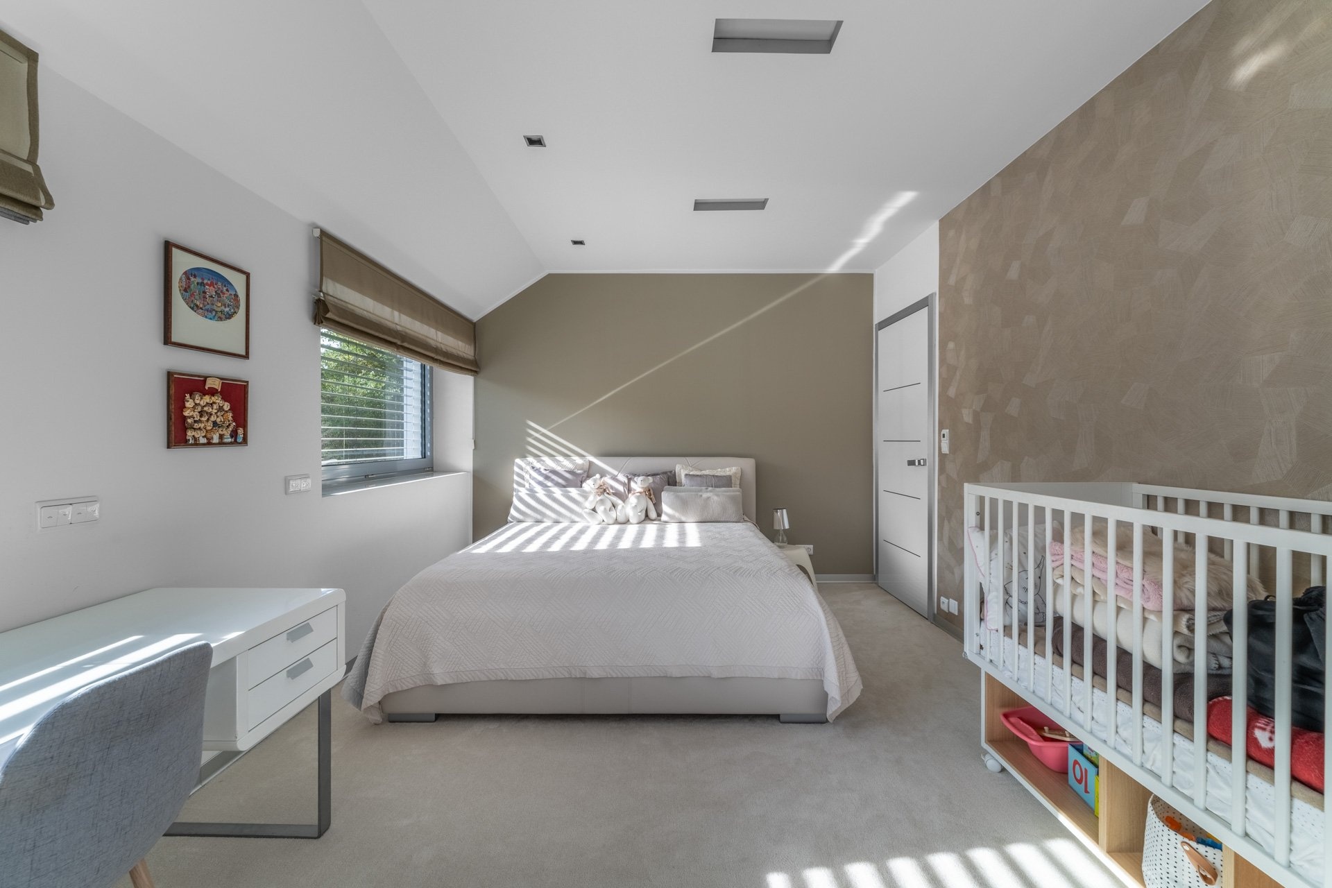 On the second floor, there is a bedroom (16 m²), a spacious dressing room (13 m²) with a bathroom with a shower, and a guest room (20 m²) with its own bathroom with a bathtub and toilet. Under the roof of the house is a storage space that can be converted into a children's playroom, etc. The floor area of the house is 151 m².