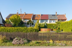 The house is brick, terraced - energy friendly and equipped with new modern standards. On the floors are wooden parquet, vinyl and ceramic tiles. The ceilings are non-combustible to steel beam; the roof is gabled, Tondach roofing, in 3. The ceiling is insulated. Hormann front doors are insulated, windows are plastic - double glazed. Heating: central heating combined with Immergas gas boiler with hot water heating via a 200 l boiler (can be switched to electric hot water heating). Monthly gas heating costs were last year at full operation 1.500 CZK/month.