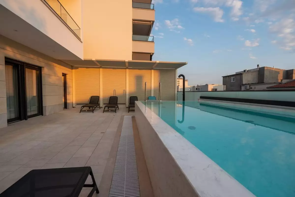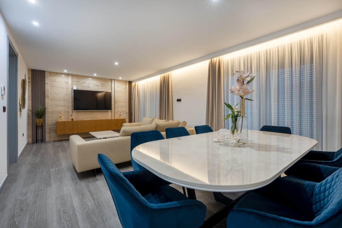 An exclusive holiday villa is for sale in the Makarska area, near the towns of Omiš and Split on the Croatian coast. The villa is situated on the south side, offering breathtaking panoramic views of the crystal clear sea. It combines a modern interior, elegant design, and the highest level of comfort, creating the ideal environment for a luxurious Mediterranean vacation.