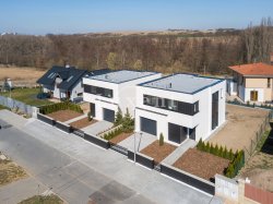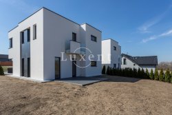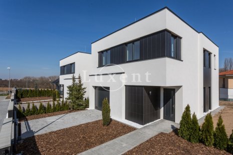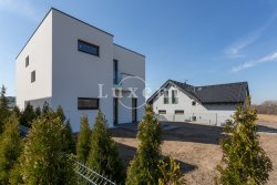 We exclusively offer a newly built two-storey family house in a small project of two family houses Villa Pitkovice. Both houses are built in modern architecture on a 452 sqm plot. So far, visualizations have been used, photographs are being prepared. The houses were completed in 2019. From the top floor there is a pleasant panoramic view of the surrounding countryside. The property is well built to the smallest detail, including irrigation systems, tree planting, exterior finishing. Floor area of each house is 155 sqm, built-up area 95 sqm. On the upper floor of the house there are three bedrooms, two bathrooms, study and laundry; living room with dining area and kitchenette on the ground floor; technical and storage facilities. There is also a garage for one car on the ground floor. There is a second parking space on the property.