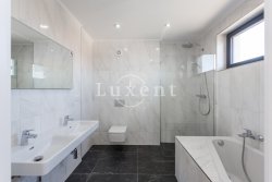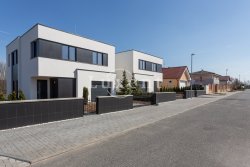 The construction of the house is made of poroterm on a reinforced concrete foundation, insulation of the walls is 12 cm. Windows - triple, folding, oak. Oak doors, entrance security. Italian ceramics “Imola”, Laufen sanitary ware in bathrooms. Heating by condensing boiler, radiators and floor. The houses are equipped with kitchen and interior lighting. Garden based, automatic irrigation, outdoor lighting. The outdoor terrace is 25 sqm wide and decorated with Italian 60 x 60 cm ceramic tiles. Popular location with quick access to Prague, Čestlice and Průhonice shopping areas - 600 m.