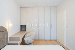 The 34 m² living room is tastefully furnished with designer furniture and includes a fully equipped kitchen with Bosch appliances and a dining area. The dining room and bedrooms (11.3 m² and 15.9 m²) have direct access to a private atrium (43.1 m²). The comfortable bathroom (6.2 m²) is equipped with two sinks, a bathtub, a shower and a toilet.
