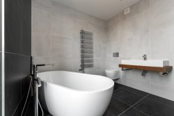 On the 1st floor there is a master bedroom (23.4 sqm) with a bathroom that offers a free standing bath, shower, toilet (7.7 sqm) and a separate dressing room (6.4 sqm). There are also two large bedrooms that have access to the balcony, a study (20.4 sqm), a bathroom (9.4 sqm), a separate toilet, a hallway (23 sqm) that also has access to the balcony and the possibility of a pleasant sitting area.