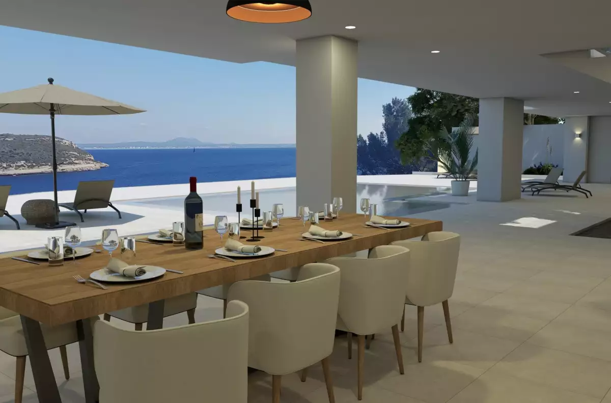 We offer for sale a luxury villa with breathtaking sea views, located in the prestigious location of Cala Vinyes in Spanish Mallorca. This newly built villa, with a layout of 6 bedrooms, offers a usable area of 617 m² on a plot of 1290 m². The property is an ideal retreat for those seeking a combination of luxury, privacy and natural beauty.