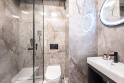 The first floor has three spacious bedrooms. The master bedroom has its own en-suite bathroom, while the other two bedrooms share a second, fully equipped bathroom.