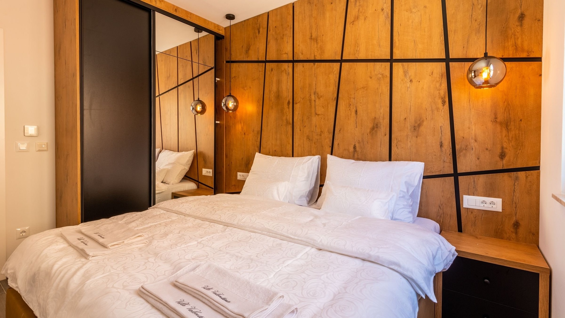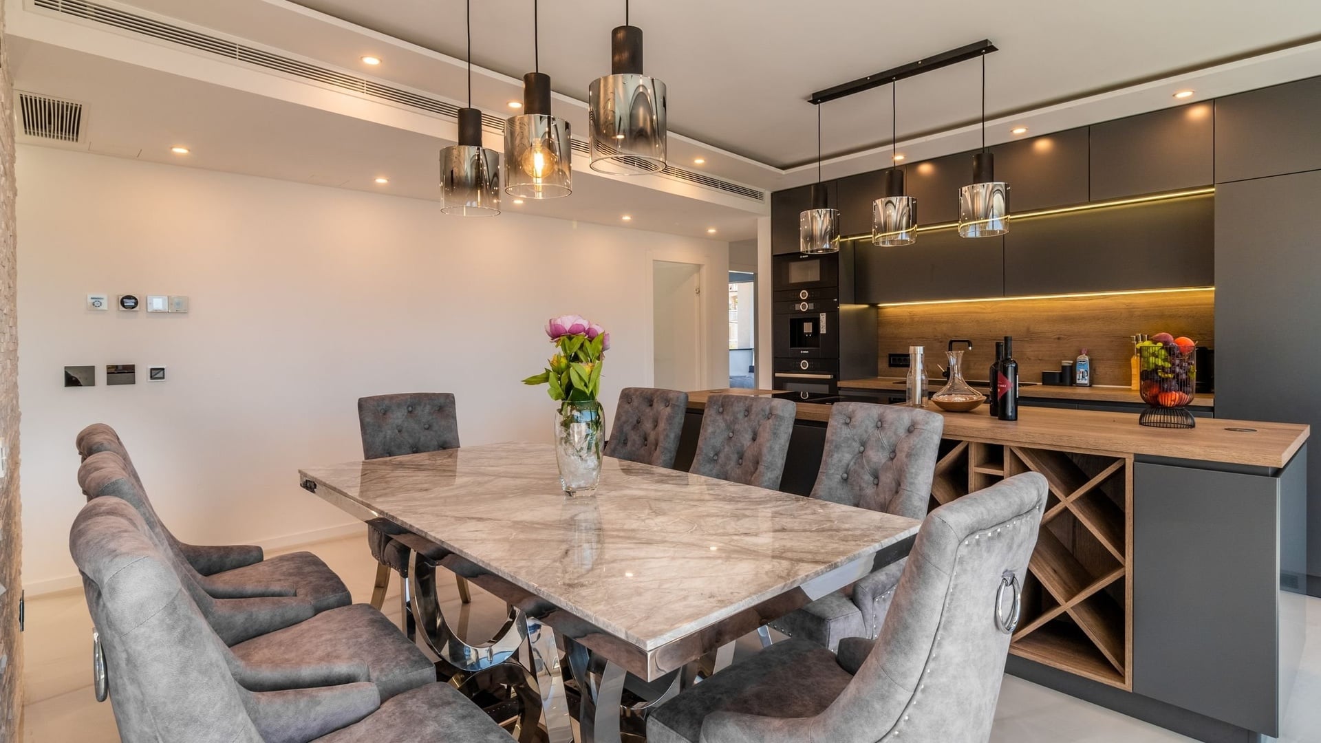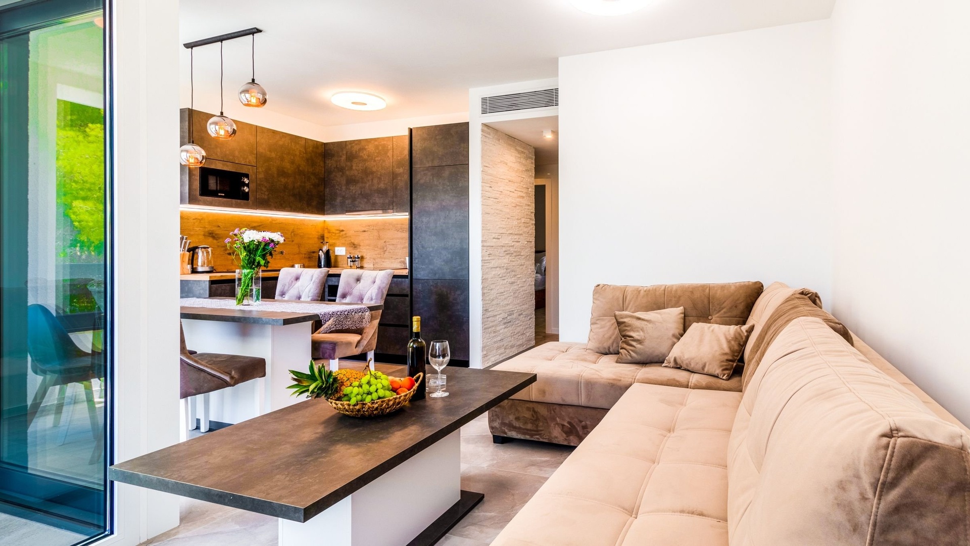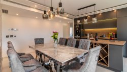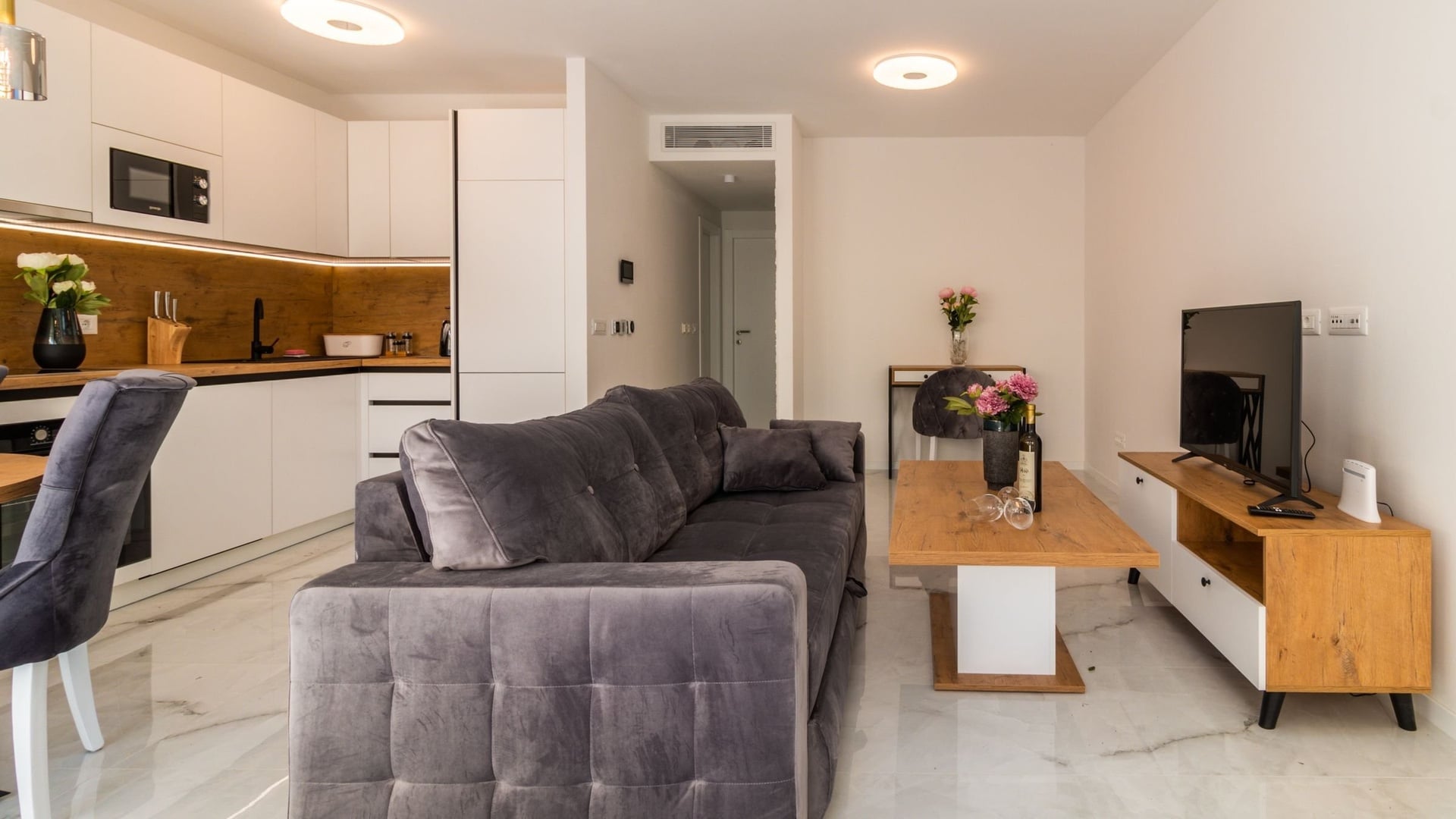 The interiors of the apartments are furnished with built-in wardrobes, recessed LED lighting, and the latest home appliances. Comfort is ensured through underfloor heating, wall heating, and ducted air conditioning in every room. The villa is designed in line with the latest standards of modern living, with an emphasis on elegance, comfort, and technological sophistication.
