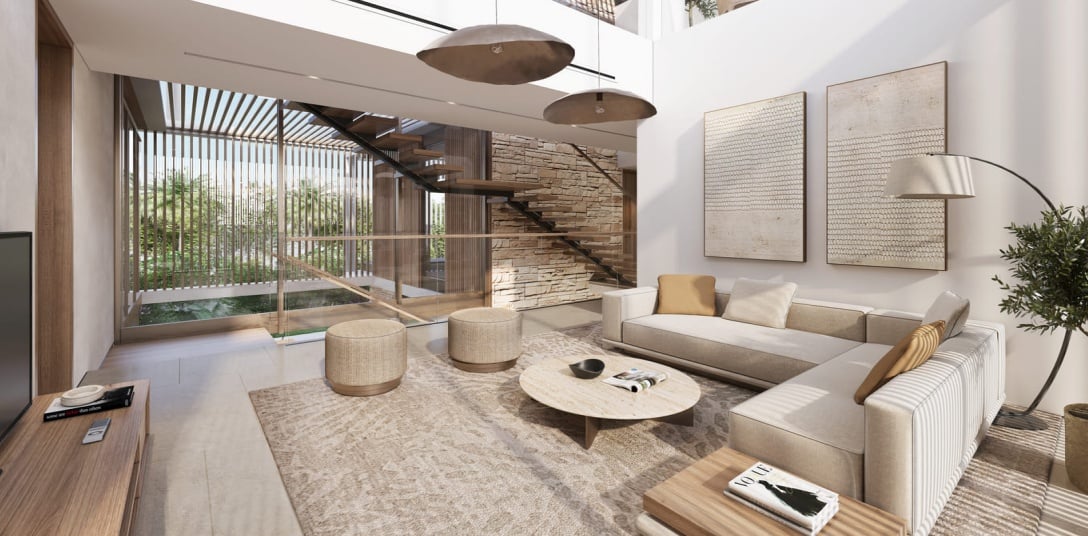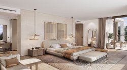 The villa has three floors, a private terrace with a garden and features four bedrooms, several bathrooms and a living room with kitchenette. The interior of the project is also inspired by nature and boasts high quality materials with design elements of stone, wood and glass. The property is partially furnished, allowing future residents to customize its interior to their own style.