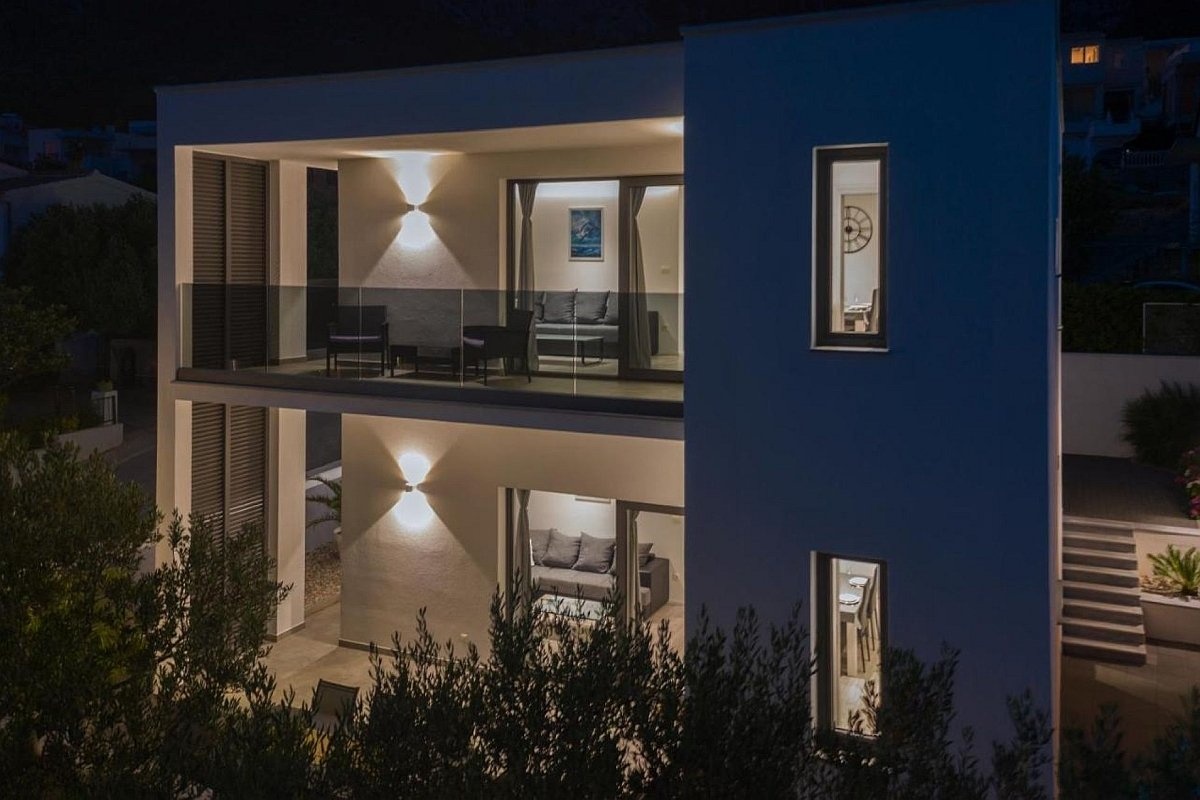 We offer for sale an exclusive two-story villa with breathtaking views of the crystal clear waters of the Adriatic Sea. This elegant property is located on the south side of the coast, in a quiet area between the towns of Omiš and Makarska, just 50 km from the historic center of Split.