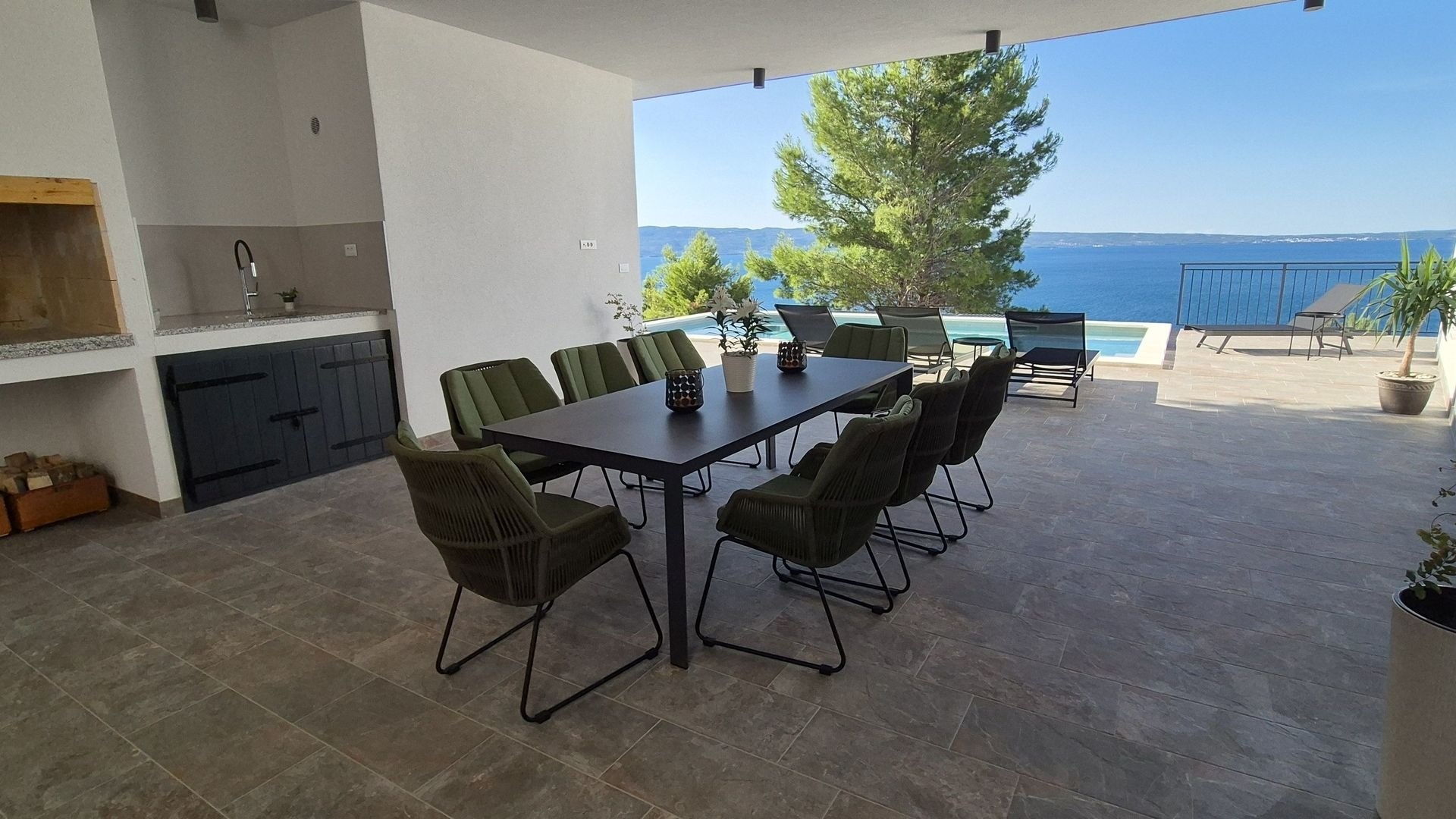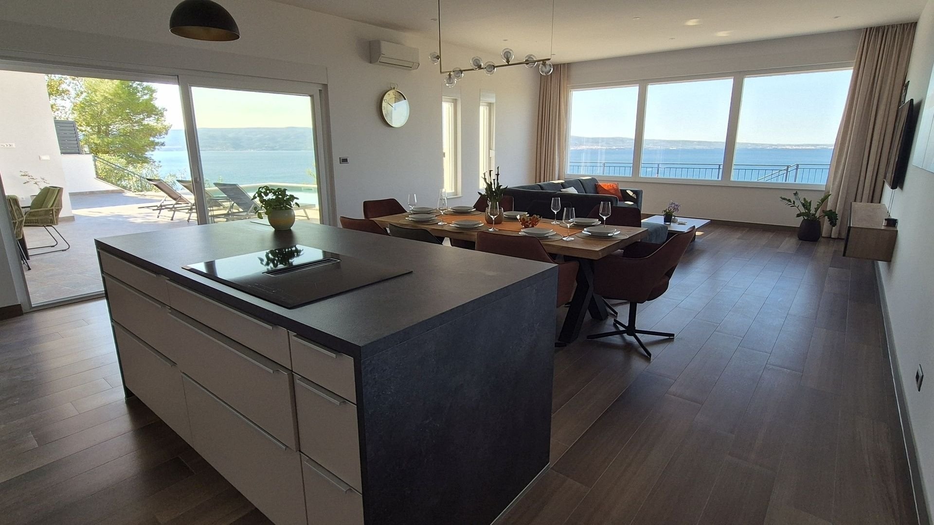 We are proud to present a newly built modern villa with a swimming pool and breathtaking panoramic sea views, located in a peaceful elevated setting near the town of Omiš. This exclusive property offers complete privacy, top-quality amenities, and a harmonious blend of luxury and the natural beauty of the Dalmatian coast.