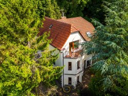 We offer for sale a three-story villa from the 1930s in a quiet part of Prague - Modřany. The villa with a beautiful garden with mature trees ensures maximum privacy and breathtaking views of the surrounding area. The villa stands on a sloping plot of 1,644 m² and offers a floor area of 239 m².