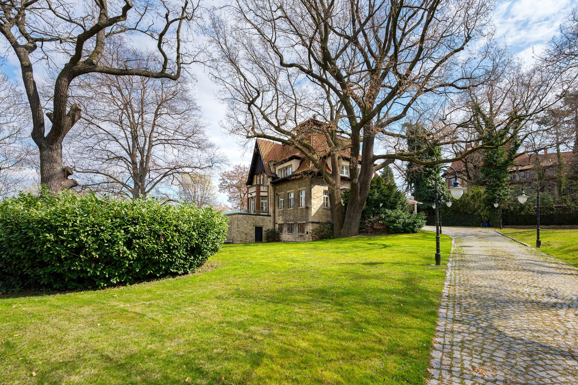 The villa is equipped with air conditioning in all rooms and has been meticulously maintained over the long term. Thanks to the harmonious blend of historic elegance with modern technologies and high-quality materials, it meets even the highest standards for comfortable and prestigious living.