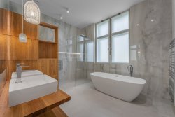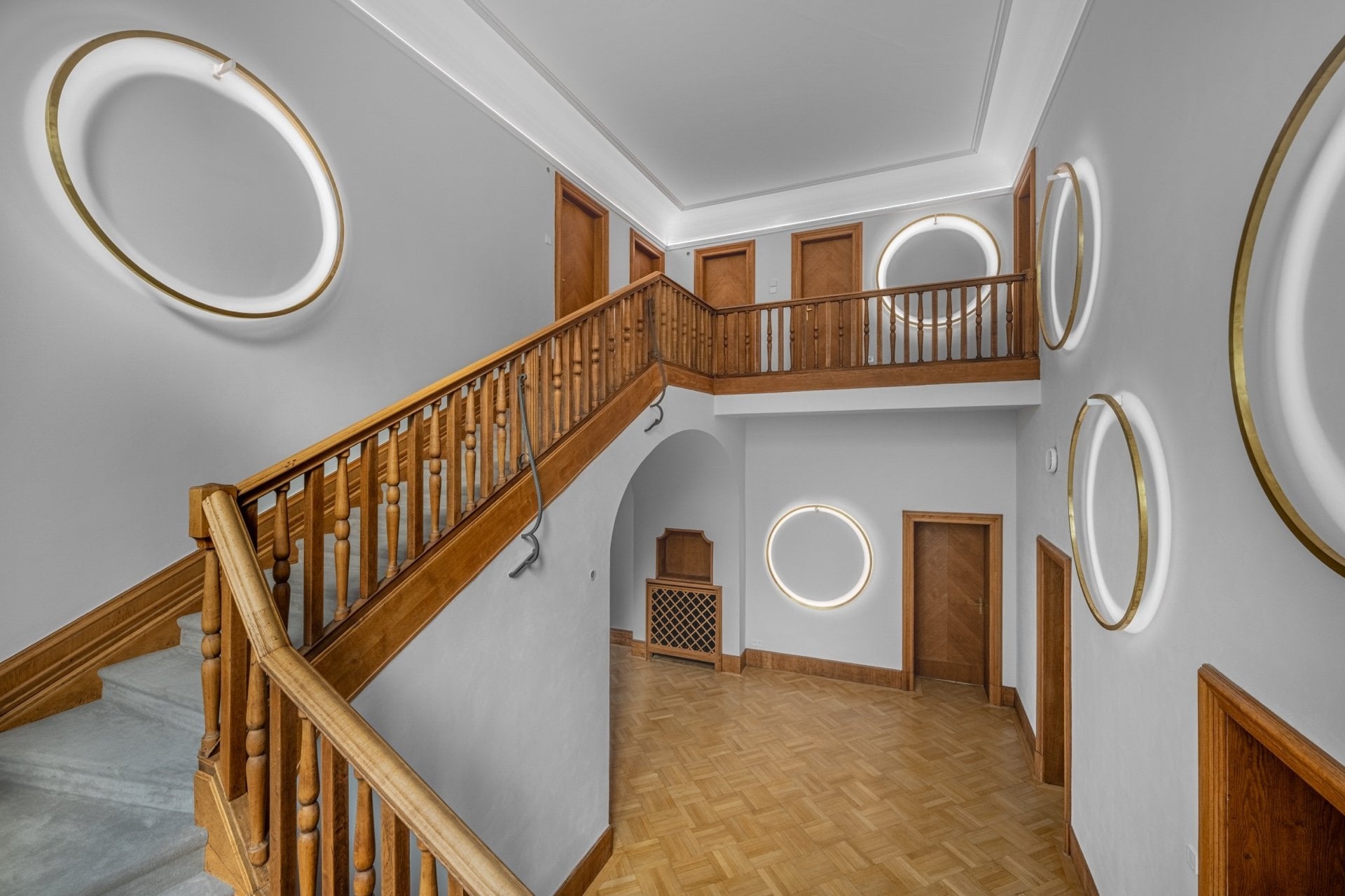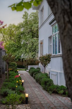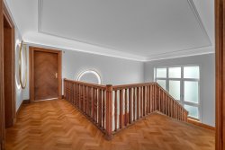 The ground floor interior, forming the heart of the entire house, welcomes you with a grand entrance hall featuring the original carved staircase. Other highlights include a spacious dining and living room seamlessly connected to a salon, study, and winter garden. From the expansive terrace—accessible from the hall, living room, and kitchen—a double-flight staircase leads directly to the garden. This floor also includes a walk-in wardrobe and a guest toilet. The first floor offers a private zone with three bedrooms, two luxurious bathrooms, a balcony, stylish built-in wardrobes, and a playroom. The attic comprises a kitchen, two bathrooms, four rooms, wardrobes, and storage areas. Together with the basement, which has a separate entrance from the garden and spaces suitable for a wine cellar or technical facilities, these two levels provide an opportunity for further customization according to your preferences—whether you envision a wellness area, offices, or an apartment for guests or staff.