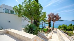 We offer for sale a newly built luxury villa located directly on the seafront, offering an exceptional combination of Mediterranean tranquility and top-notch comfort. Situated on a spacious plot of 1,483 m², it is surrounded by unspoiled nature and open sea views, which enhance the exclusivity of the entire property.