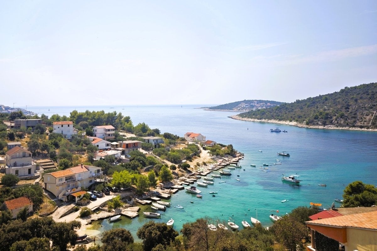 We offer for sale a villa in a quiet location near the Croatian town of Rogoznica, just 70 meters from the sea. The property is surrounded by Mediterranean greenery and an olive grove. The property offers breathtaking views of the bay, complete privacy, the authentic atmosphere of the Dalmatian coast, and the comfort of modern living.