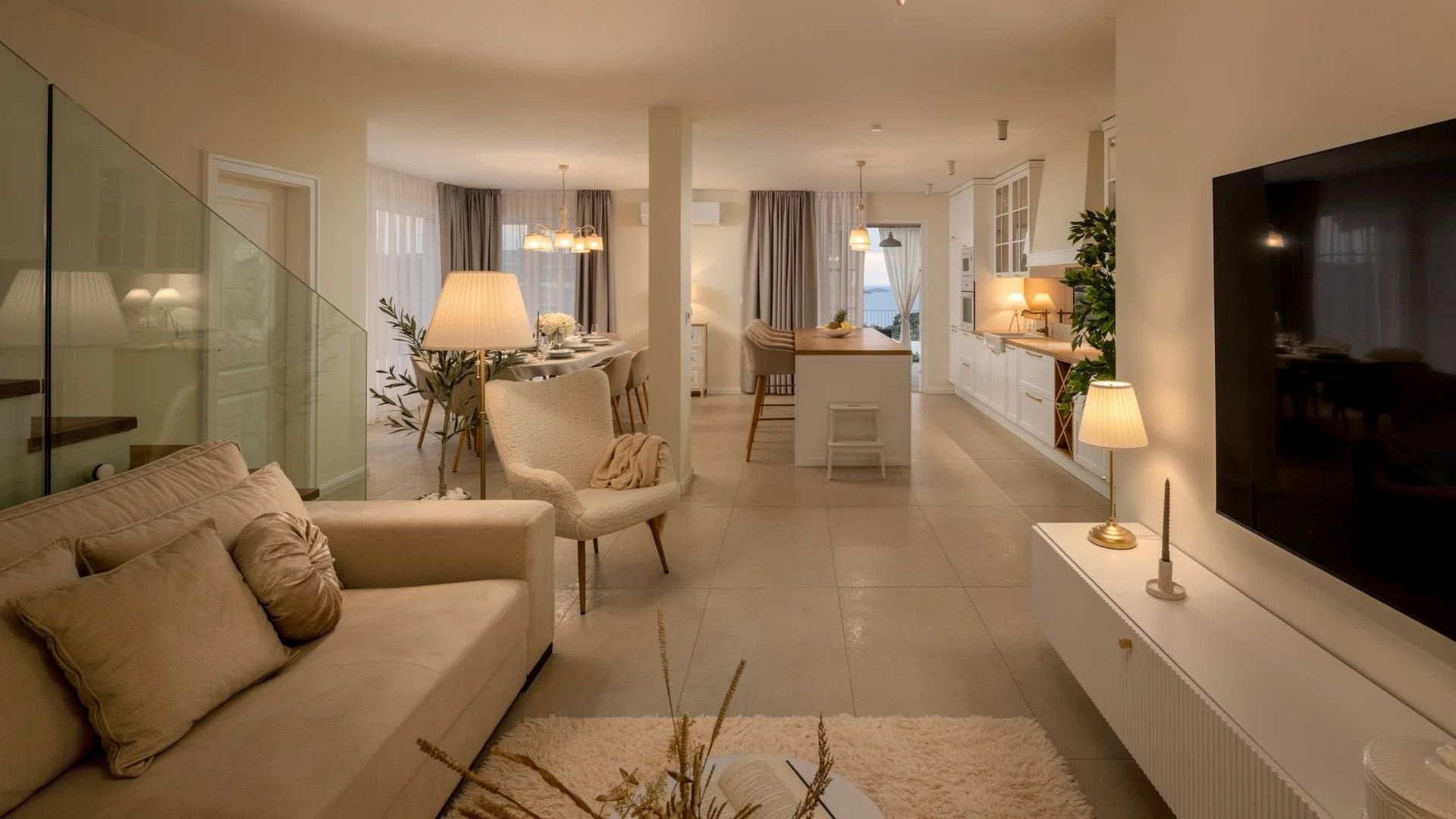 The villa is located 600 meters from the sea, 2.5 km from the town center with shops, restaurants, and other services, and 30 km from Split Airport, ensuring excellent accessibility and a comfortable living environment.