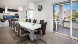 The villa is situated at the end of a quiet dead-end street with no traffic, just 50 meters from the beach, which guarantees undisturbed privacy and maximum comfort throughout your stay.