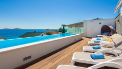 The second floor is dedicated to relaxation and entertainment. It is dominated by a terrace with an infinity pool (7.80 x 2.30 m), a jacuzzi for four people and comfortable sun loungers - the perfect place to relax overlooking the azure Adriatic Sea. Inside this floor there is a sauna with shower, two toilets, a games area with billiards, table football, darts and a small kitchen.