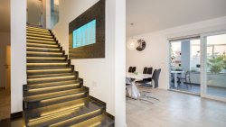On the first floor there are three further bedrooms with en-suite bathrooms, an elegant living room and a terrace with sea views.