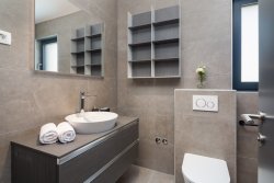 The villa is fully equipped with modern designer furniture and the highest quality materials and technologies were used in its construction. It combines modern architecture, comfort, and functionality at the highest level.