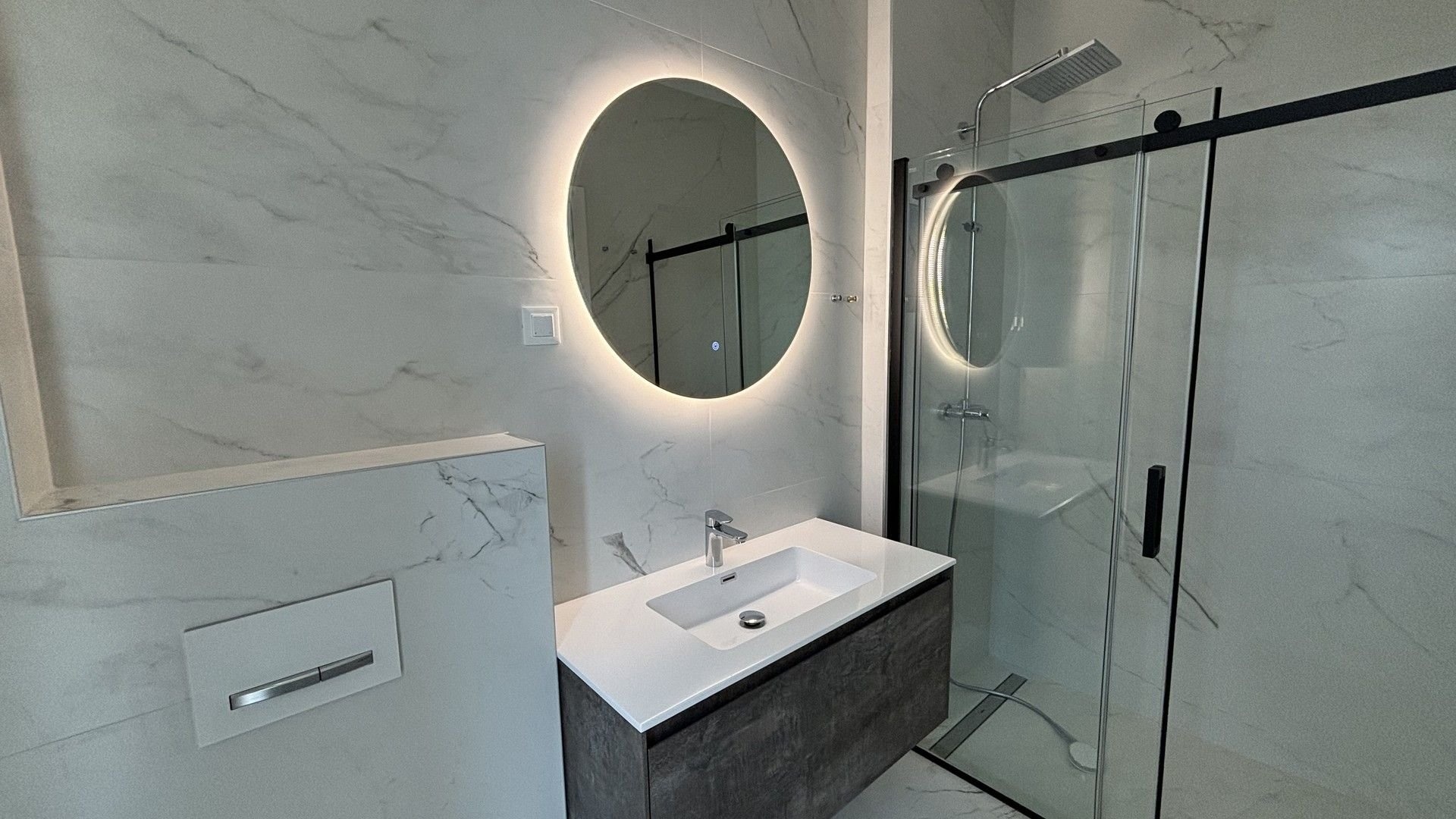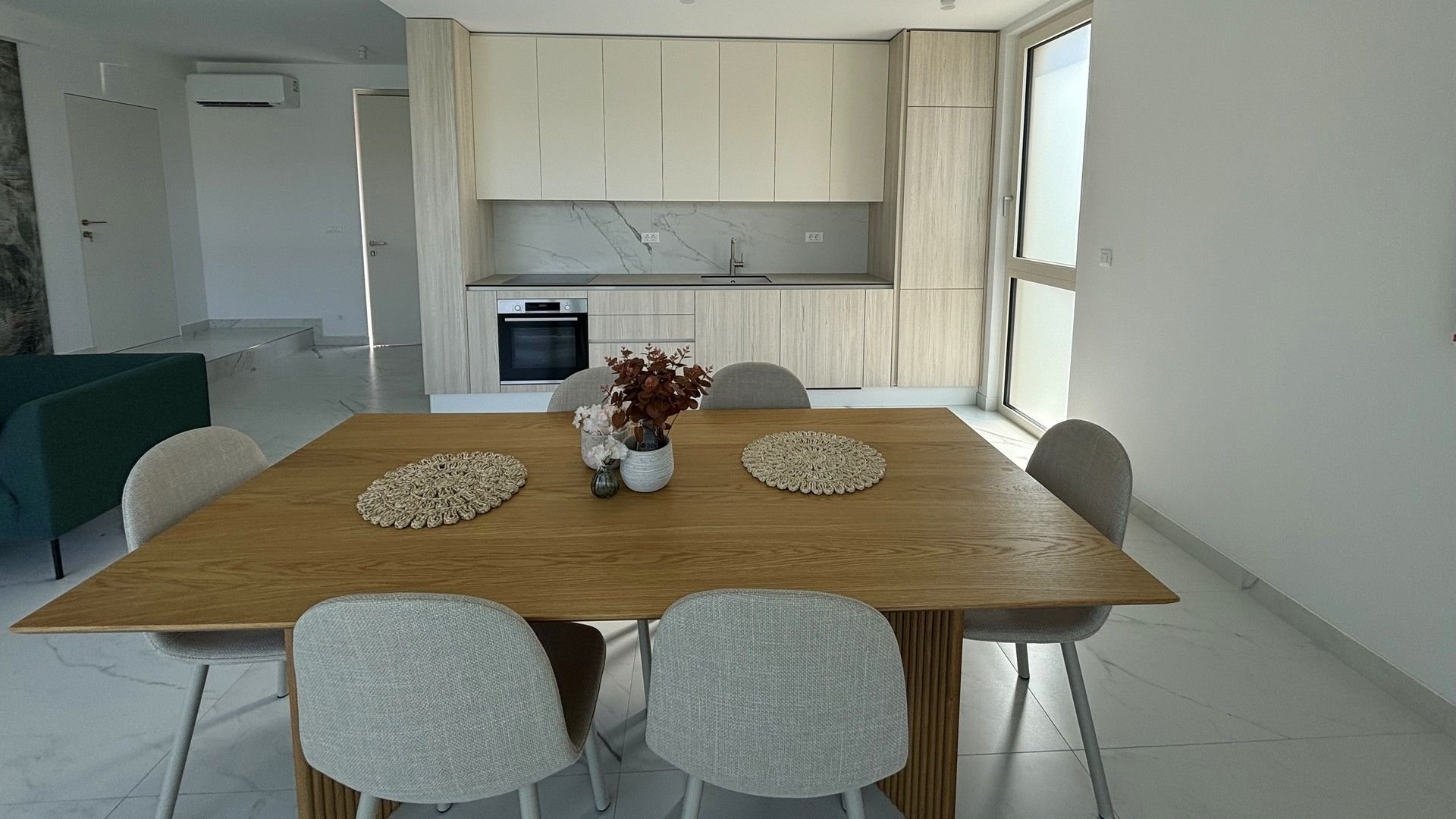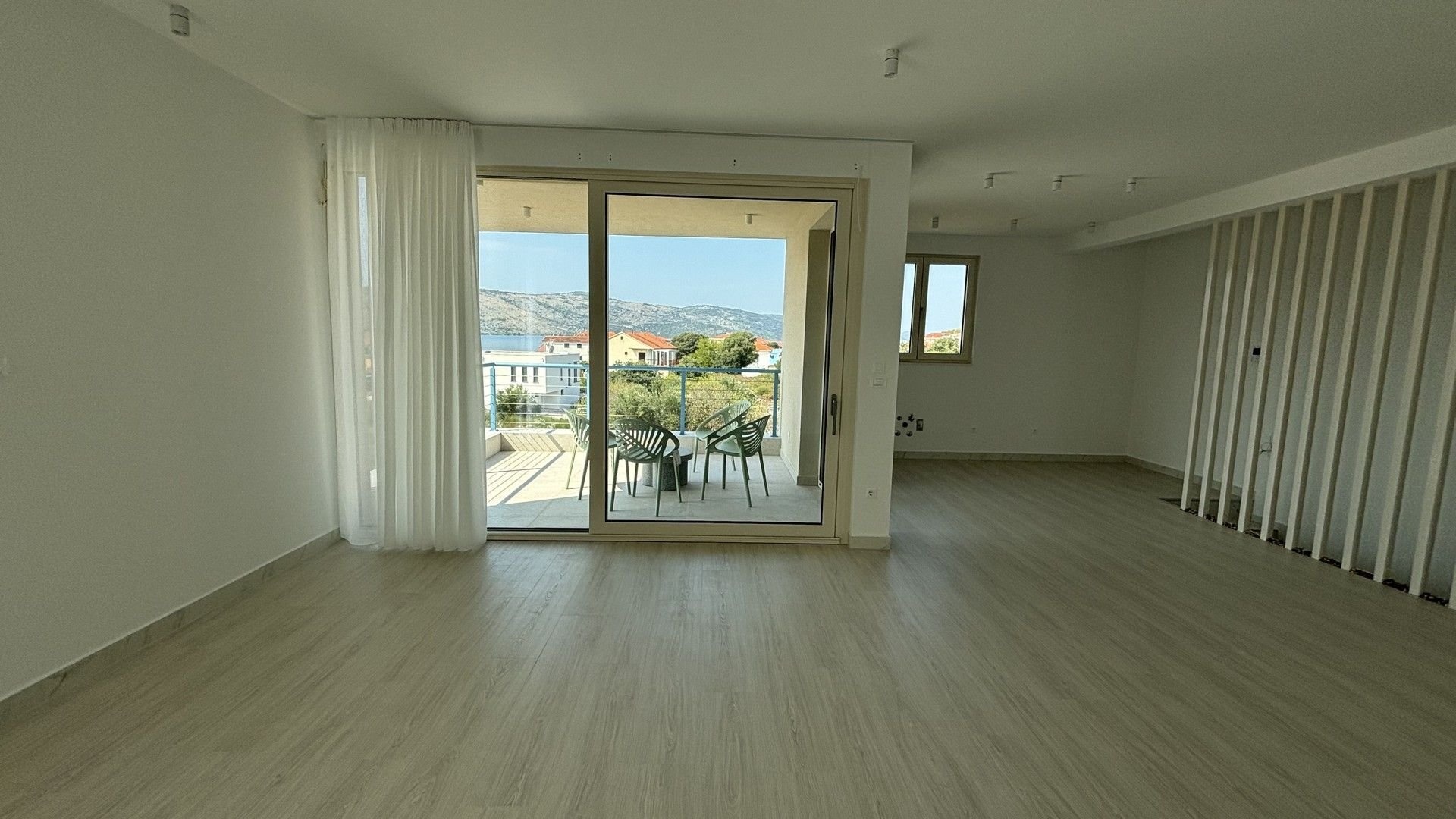 Newly built semi-detached villa with private pool for sale is located in a quiet location near Trogir, just 80 m from the sea. On a plot of 565 sqm there is a three-storey villa with a total living area of 200 sqm.