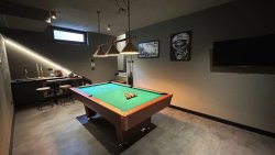 The second residential part is a separate smaller building with an apartment with a fully equipped kitchen, living room, and bathroom. In the basement of this building, there is a bar with a kitchen, a separate toilet, and a games room – ideal for entertaining and relaxing guests.