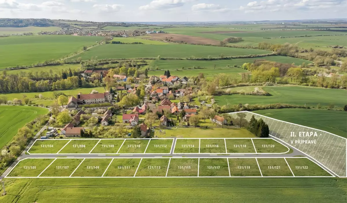 The plot is part of the Nad Pilířem development project; in Phase 1, we are offering a total of 19 building plots. The complete utility connection of the plots is currently underway (in two phases) under the supervision of the experienced developer VPK Suchý s.r.o. Each plot will have connections to electricity, municipal water, sewer, and a modern fiber-optic cable for high-speed internet. The plots will then be ready for immediate construction of your family home without the need for further infrastructure investments or lengthy administrative procedures, and will become an ideal location for a home office as well as daily commuting to the capital.
