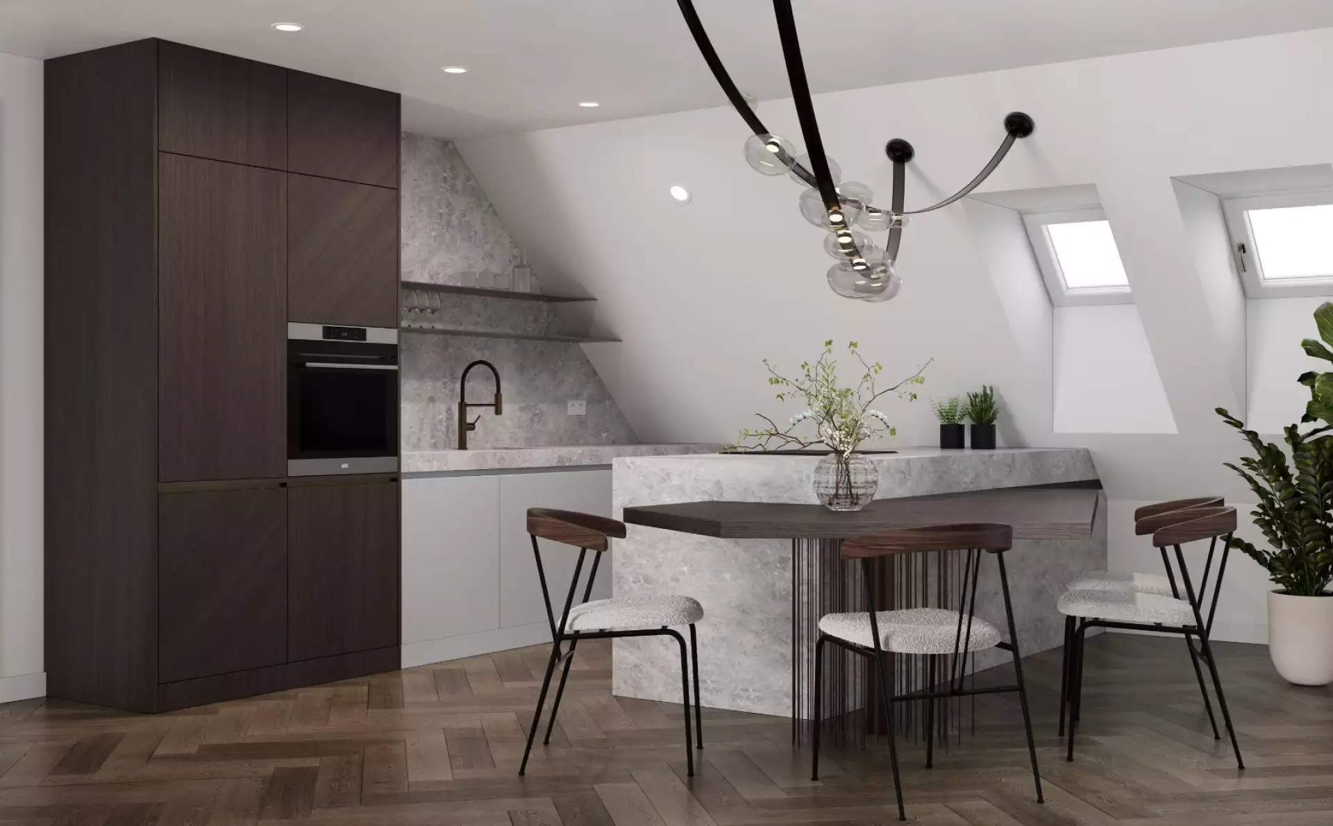 The eight floors of this sensitively renovated residence will feature only 24 single-story residential units ranging from 2+kt to 4+kt. Each apartment has been designed by leading architects from the SMLXL studio with an exceptional emphasis on high-quality materials, technical precision, and timeless aesthetics. The interiors stand out with their thoughtful use of space and modern standards.