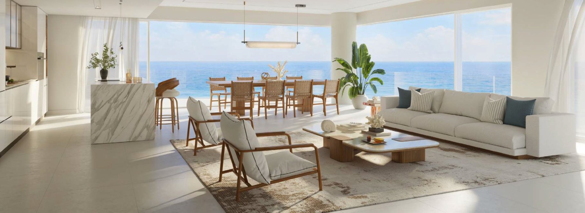 Architektonické řešení vychází z přírodních linií pobřeží a nese podpis renomovaného studia Koichi Takada, jehož rukopis se odráží v elegantních tvarech budov, plynulých balkonech a maximálním využití denního světla. Otevřené interiéry, velkoformátová okna a promyšlené orientace jednotek zajišťují nerušené výhledy na moře a okolní zeleň, zatímco jemné materiály a nadčasový design podporují pocit klidu a rovnováhy.