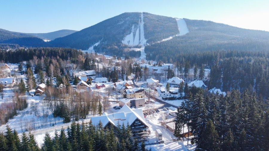 Projekt vyrostl v oblíbeném horském centru Harrachov na okraji Krkonošského národního parku, který skýtá bohaté vyžití v létě i v zimě. Moderní středisko poskytuje skvělé podmínky pro lyžování, snowboarding, běžkování, ale i pro golf, cykloturistiku či další outdoorové aktivity. Mezinárodního věhlasu dosáhlo město jedním z pěti světových můstků pro lety na lyžích.