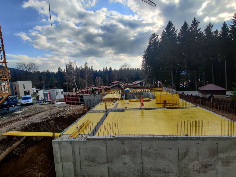 Práce naplno pokračují v oblíbeném krkonošském středisku Harrachov, kde roste projekt Harrachov Peaks. Byly dokončeny svislé konstrukce v prvním podzemním podlaží, naopak se zahájily práce na výztužích stropu. Ty se brzy přesunou o patro výše – na stavbu prvního nadzemního podlaží.