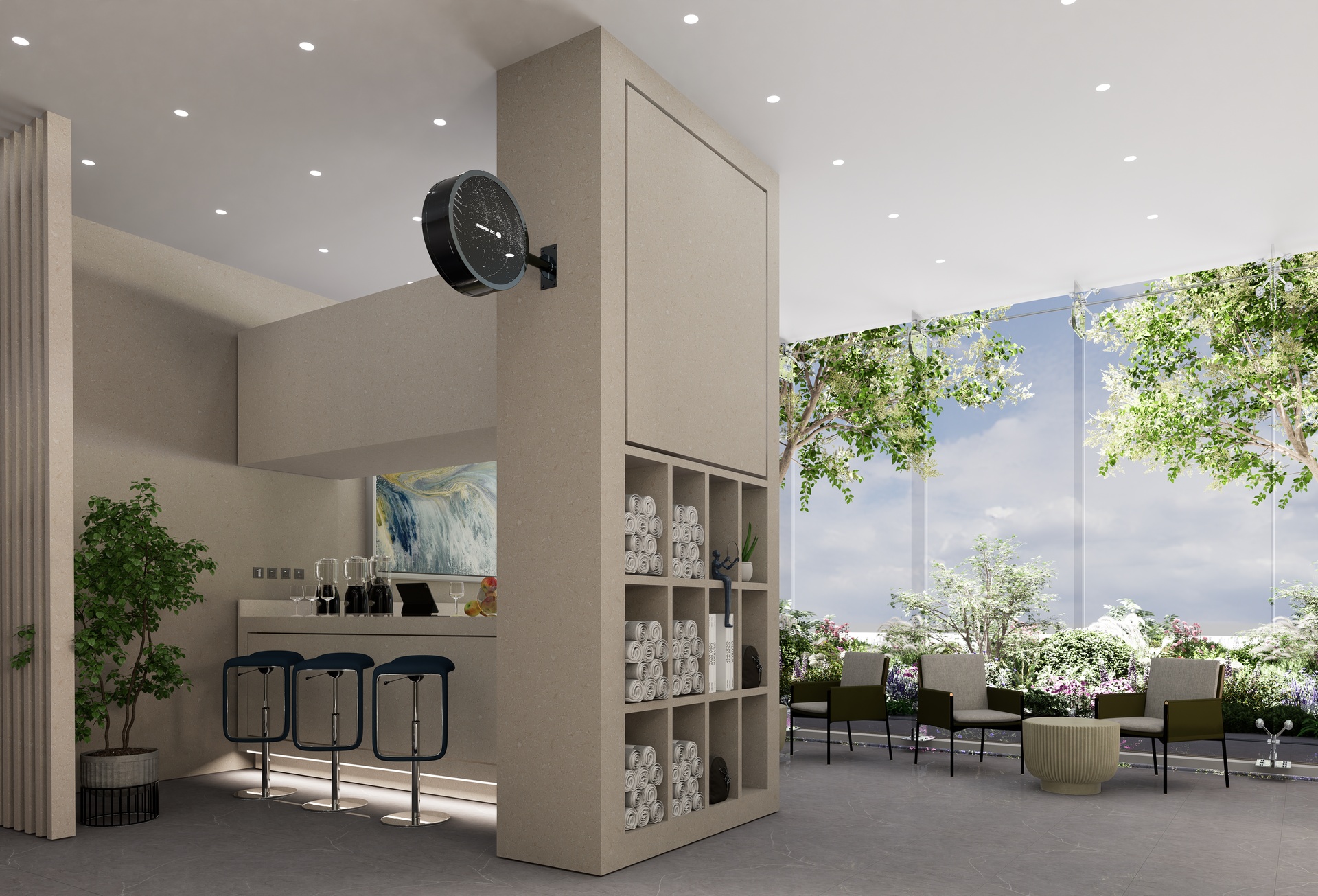 Ikonický rezidenční projekt má 52 pater. Apartmány jsou buďto plně nebo částečně vybavené. Každý detail byl pečlivě navržen s důrazem na kvalitu, luxus a design. Moderní světlé interiéry s úžasnými výhledy a balkonem nadchnou i velmi náročné. Otevřená kuchyně a obývací pokoj nabízí příjemný prostor pro posezení s rodinou nebo přáteli. Na balkoně je možné grilovat, odpočívat a koukat se na krásné západy slunce. Rezidenti budou mít k dispozici čtyři zahrady, golfový simulátor, soukromé kino, společenskou místnost, wellness a bazén, parking, venkovní fitness a dětské hřiště.