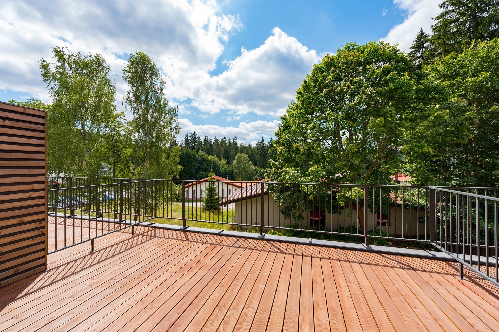 Nabízíme apartmán o dispozici 1-2+kk v 1.NP luxusního projektu HARRACHOV PEAKS. Apartmán má obytnou plochu 52,19 m² a celkovou užitnou plochu 80,16 m² vč. terasy (27,61 m²). V prostoru tohoto apartmánu získáte snadno pomocí připraveného individuálního architektonického návrhu vestavby originální dispozici blížící se 2+kk (viz vizualizace). Terasa apartmánu je vůči zemi vyvýšená a odpovídá 2. NP. Vybavený vzorový byt projektu má stejnou dispozici, takže je možné se inspirovat. Je zařízen kuchyní (spotřebiče BEKO) a skříňová vestavba odděluje spací a jídelní kout a apartmán se tak přibližuje dispozici 2+kk.