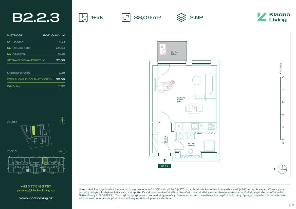 | KL-B223 | 1+kk | 1. patro | 36 m2 | 38 m2 | Ne / 3 m2 / Ne | Ne | 4 560 000 Kč | Detail |