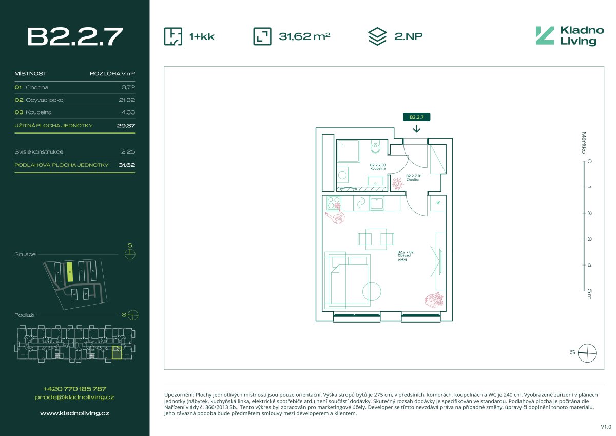 Nabízíme ke koupi moderní byt 1+kk o podlahové ploše 32 m² v rezidenčním projektu Kladno Living, který vzniká v jedné z nejatraktivnějších lokalit města Kladno – Kročehlavy. Tento nový developerský projekt představuje jedinečnou příležitost pro ty, kteří hledají nové byty v Kladně nebo investici do nemovitosti s vysokým potenciálem zhodnocení.